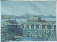 The harbour of Vesijärvi, Lahti Finland in 1951, an oil painting by T.P.51.