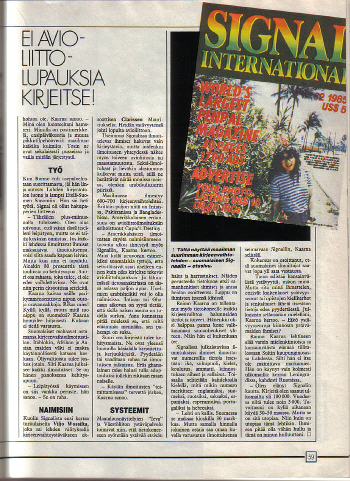 Your guess ??? The answer is 382.000 copies !!! And I alone, Raimo Kaarna, have stuffed all these printed magazines and ad sheets into envelopes,